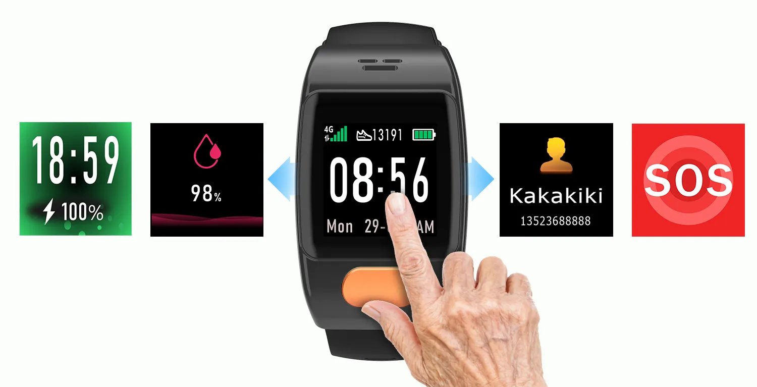 The smartwatch is thoughtfully designed for seniors, featuring large icons, clear text, and an intuitive layout that makes daily operation effortless. Users can easily access key functions—such as calling, checking health data, or sending alerts—with just a few taps. The straightforward menu structure eliminates confusion, allowing seniors to enjoy the device without needing technical experience. High contrast visuals, responsive touch controls, and logical navigation all contribute to a smooth and frustration-free experience. Whether used at home or on the go, the senior-friendly interface ensures independence, comfort, and confidence in everyday use.